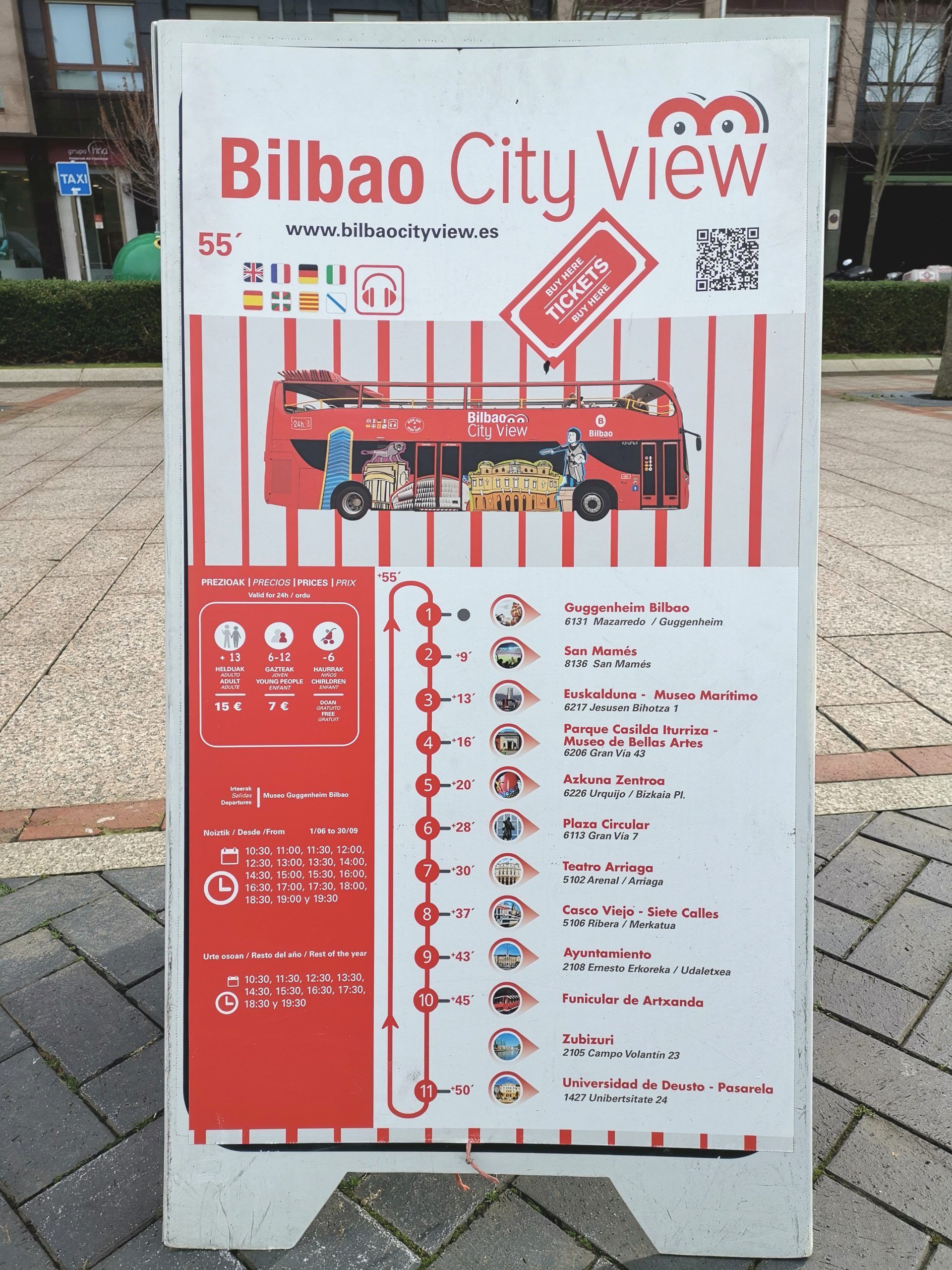 BUS TURÍSTICO BILBAO: BILBAO CITY TOURSalidas y Punto de venta: La parada principal es la parada frente al Museo Guggenheim.